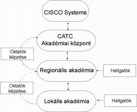 A CISCO által kialakított oktatási rendszer egy nagyon átgondolt és alaposan megtervezett struktúrát követ. A hierarchikus szerkezetben az egyes szinteken levő intézmények csak a szomszédos szinteken levőkkel állnak kapcsolatban.